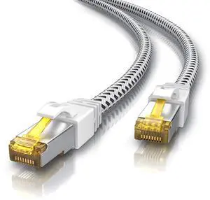 CSL 3 ft CAT 7 Braided Ethernet Cable - Network Gigabit LAN High Speed 10 Gbits Cotton Braided Patch Cable - S/FTP PiMF Shielding - RJ45 Connector - Switch Router Modem - Suitable Cat 6 Cat 8