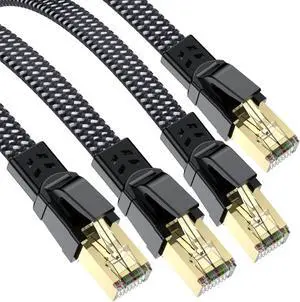 Cat 8 Ethernet Cable 20ft 2-Pack,Nylon Braided High Speed Heavy Duty 40Gbps 2000Mhz Flat Network LAN Patch Cord SFTP RJ45 Internet Cable Shielded in Wall, Indoor&Outdoor for Router,Modem,Gaming,Switch