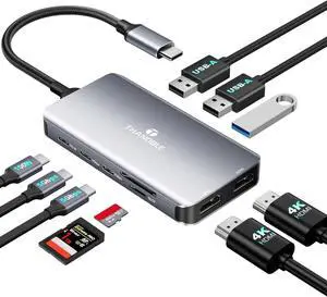 Versatile USB C Video Hub 3 Monitors Docking Station with DP Alt Dual 4K@30Hz, HDMI, 100W PD, 10Gbps*6Ports, SD 4.0, Laptop Docking Station for Dell, HP, ASUS, Steam Deck, Rog Ally, Legion Go,Samsung