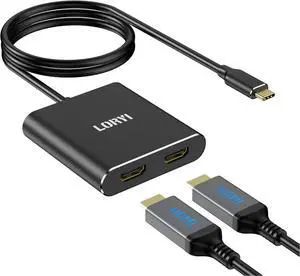 USB C to Dual HDMI Adapter 4K@60Hz, Dual HDMI Splitter, Supports Extended Mode, HDMI Cable Adapter, Extended Mode, Mirror Mode, Suitable for Remote Work Compatible with Thunderbolt 3