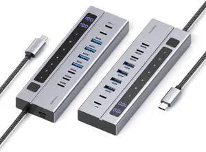 RSHTECH 10 Ports Powered USB 3.2/USB C Hub Splitter 60W with 3 x 10Gbps USB 3.2 Ports (2C + 1A),7 x USB 3.0 Ports (4C +3A), 3.3ft Cable and Individual Touch Switches for Laptop PC