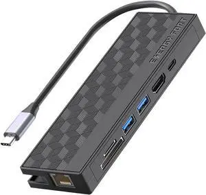 Jiawu USB C Hub, 9 in 1 Multiport Adapter for Laptops, USB C to HDMI Splitter with RJ45, Ethernet, VGA, 4K Display, HDMI, Powered USB A, 2xUSB 3.0 Ports, 5Gbps Data Transfer