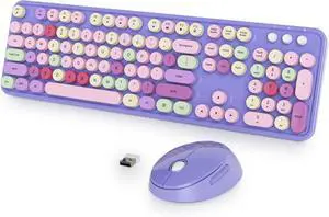 UBOTIE Colorful Computer Wireless Keyboard Mouse Combos, Typewriter Flexible Keys Office Full-Sized Keyboard, 2.4GHz Dropout-Free Connection and Optical Mouse (Pink-Colorful)