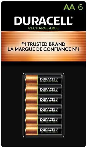 AA Duracell Rechargeable (DX1500) 2500 mAh NiMH Rechargeable Batteries (6 Card)
