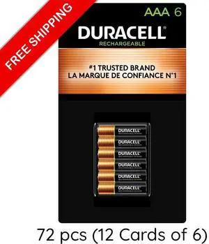 72-Pack AAA Duracell 900mAh NiMH Rechargeable Batteries (12 Cards of 6)