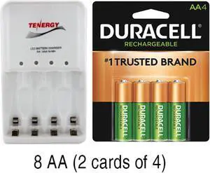 4 Bay AA / AAA LED Smart Battery Charger + 8 AA Duracell 2500 mAh NiMH (DX1500) Batteries