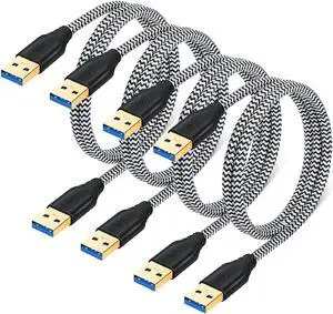 USB3.0 to USB3.0 Cable [1.6Ft, 3-Pack], USB 3.0 Male to Male Type A to Type A Double Sided USB Cord for Data Transfer Compatible for Hard Drive, Laptop, DVD Player, TV, USB 3.0 Hub, Monitor