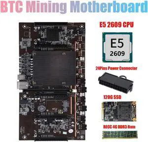 X79 H61 BTC Miner Motherboard with E5 2609 CPU+RECC 4G DDR3 Ram+120G SSD+24Pins Connector Support 3060 3070 3080 GPU