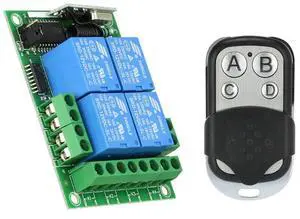 433MHz Wireless RF Remote Control Relay Switch DC12V 4CH Relay Receiver Module Relay Remote Control for Gate Garage Door Light
