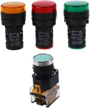 4 Pcs Electronic Accessories: 3 Pcs Red, Yellow-Green Light Lamp 22 Mm LED Pilot Display Panel & 1 Pcs LA38-11/203 Push Button M