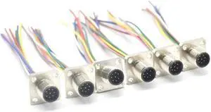 M12-8 Core 6P 2A Square Fixed Male Connector with Hole Connector Aviation Plug with 10cm Electronic Wire
