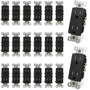 ELEGRP Glossy Black Outlet Decorative Outlet Tamper Resistant Outlet 15 Amp Outlet Electrical Outlets, Duplex Receptacle, Self-grounding Wall Outlet, 125V,2 Pole 3 Wire, 5-15R, UL Listed, 20 Pack