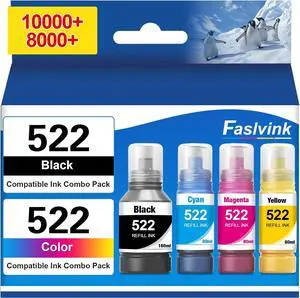 522 Ink Refill Bottles Compatible for Epson 522 Ink Refill Bottles 5 Pack Replacement for EcoTank ET-2803 ET-2800 ET-2720 ET-4800 Printer