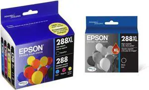 Epson T288XL-BCS Cartridge Ink, 4 Pack, Black & T288XL120 DURABrite Ultra Black High Capacity Cartridge Ink