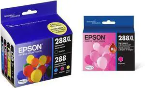 Epson T288XL-BCS Cartridge Ink, 4 Pack, Black & T288XL320 DURABrite Ultra Magenta High Capacity Cartridge Ink