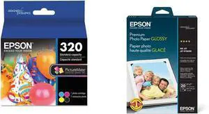 Epson T320P PM-400 Colour Ink Cartridge, Photo Paper Print Pack Ink & Premium Photo Paper Glossy (5x7 Inches, 20 Sheets) (S041464)