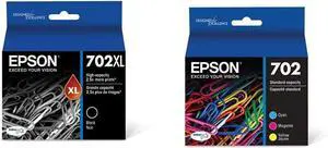 Epson T702XL120-S DURABrite Ultra Black High Capacity Cartridge Ink & 702 DURABrite Ultra Standard Capacity Cartridge Ink, Colour Combo Pack (T702520)