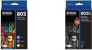 Epson 802 DURABrite Ultra Standard Capacity Cartridge Ink, Colour Combo Pack (T802520) & T802XL120 DURABrite Ultra Black High Capacity Cartridge Ink