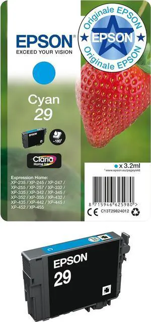 Epson C13T29824022 (29) Ink Cartridge Cyan, 180 Pages, 3ml