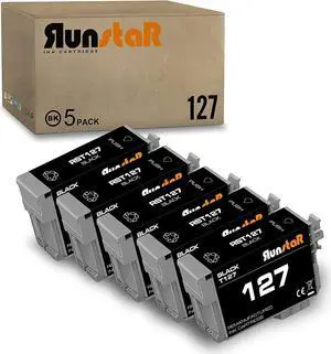 Run Star 5 Black 127 Remanufactured Ink Cartridge Replacement for Epson 127 T127 use for Epson Workforce 60 435 520 545 645 840 845 WF-3520 WF-3540 WF-7010 WF-7510 WF-7520 Printer (5 Packs)
