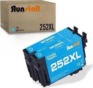 RunStar 2 Pack 252XL Cyan Remanufactured Ink Cartridge Replacement for Epson 252XL T252XL use for Epson Workforce WF-3620 3630 3640 7110 7610 7620 7210 7710 7720 Printer (2 Cyan)