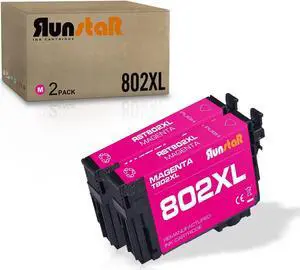 Run Star 2 Packs 802XL Magenta Remanufactured Ink Cartridges Replacement for Epson 802XL T802 T802XL T802XL120 for Epson Workforce Pro WF-4740 WF-4720 WF-4730 WF-4734 EC-4040 Printer (2 Magenta)