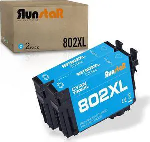 Run Star Remanufactured 802XL Cyan Ink Cartridges Replacement for Epson 802XL T802 T802XL T802XL120 for Epson Workforce Pro WF-4740 WF-4720 WF-4730 WF-4734 EC-4040 EC-4020 EC-4030 Printer (2 Cyan)
