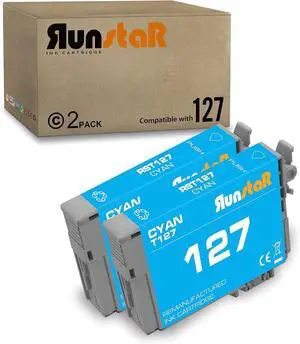 Run Star 2 Pack 127 Cyan Remanufactured Ink Cartridge Replacement for Epson 127 T127 use for Epson Workforce 60 530 625 545 645 840 845 WF-3520 WF-3540 WF-7010 WF-7510 WF-7520 Printer (2 Cyan)