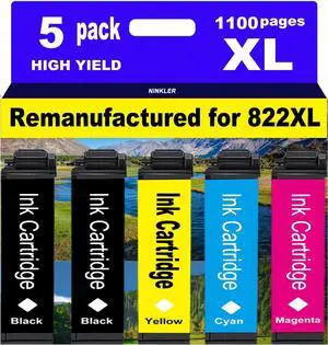 822XL Remanufactured for Epson 822XL Ink Cartridges 822 XL T822 for Workforce Pro WF-3820 WF-3823 WF-4820 WF-4830 WF-4833 WF-4834 Printer 5 Pack 2 Black 1 Cyan 1 Magenta 1 Yellow