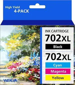 WEKVA Remanufactured Ink Cartridge Replacement for Epson 702XL 702 T702XL T702 Use with Workforce Pro WF-3720 WF-3733 WF-3730 Printer (1 Black, 1 Cyan, 1 Magenta, 1 Yellow, 4 Pack)
