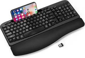 EAYBLLY Ergonomic Wireless Keyboard with Cushioned Wrist Rest, Wave Keys, Phone Holder, Comfortable Natural Typing, 2.4GHz Full Size Cordless USB Computer Keyboard for Laptop, Mac, Windows (Black)