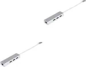 Artibetter 2pcs 3-Port USB Type- with Ethernet Adapter 1000mbps USB 3.0 Data Hub for Laptop Pc Tv