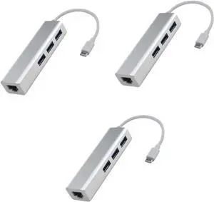 jojofuny 3pcs 3 Type c Port to Ethernet USB Type USB Hubs Type c to Ethernet and USB Hub Ethernet Hub White