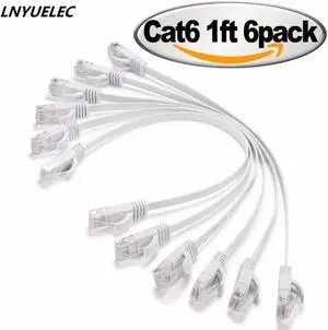 6PacK Flat Internet Network Cable Cat6 Computer Cable short Cat6 Ethernet Patch Lan Cable With Snagless Rj45 Connectors 1 Feet