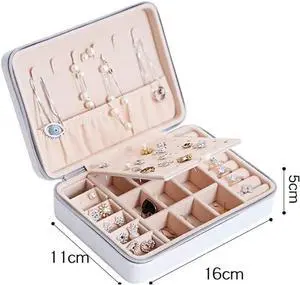 Portable Jewelry Box Organizer with Zipper, Travel Jewelry Holder for Earrings, Rings, Necklace, Bracelet Pink, 16×11×5cm(Pink) (White 16 * 11 * 5cm)