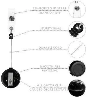 10 Pack - Retractable ID Name Badge Holder Reels With Swivel Alligator Clip (Black)