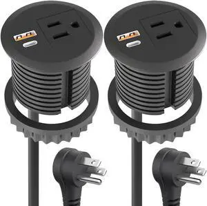2pcs Small Desktop Power Grommet 2 Inch,20W USB C Fast Charging,2-USB Port,Flush Mounted for 2" Desk Grommet Holes,Round Recessed Power Bar Outlet,Flat Plug,6.4 ft Cord,Black