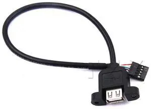 1pcs est Connector 2.54mm 5pins female to USB A 2.0 female extension cable panel mount screw ear holes 35cm cord Baffle line