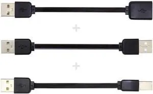 3pcs/lot 13cm USB 2.0 Type-A to Type-B Type-A Female Extension Male Data Flat Slim Cable for Printer Disk & Phone