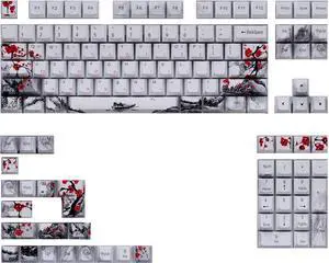 Plum Blossom Keycaps Sublimations Mechanical Keyboards Keycap 128Keys OEM Profile for Switches Personalied English/Spanish/French/Russian/German/Japanese/Korean