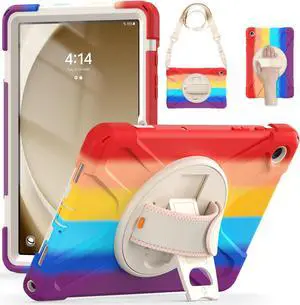 BONAEVER Case for Samsung Galaxy Tab A9 Plus 11 Inch 2023 (SM-X210/X216/X218) Shockproof Hard Protective Cover with 360 Rotating Hand Strap & Stand +Shoulder Strap for Galaxy A9 Plus 11" Rainbow