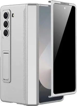 WERLEO Case for Samsung Galaxy Z Fold 5 with Privacy Screen Protector, [Anti Spy] Built-in Adjustable Kickstand & Magnetic Hinge Protection Full-Body Protective Case for Galaxy Z Fold 5 5G Silver