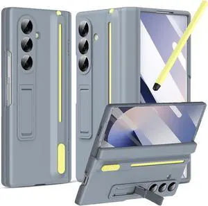 WERLEO Case for Samsung Galaxy Z Fold 5 with S Pen Holder and Stylus & Invisible Kickstand, Full Body Hinge Built-in Screen Protector Fold5 Phone Cover for Samsung Z Fold 5 Case with S Pen Slot Grey