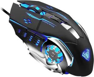 AULA S20 Wired Gaming Mouse 6 Macro Programming Buttons 2400 DPI USB Interface Backlit Ergonomic LED Optical Mice, Black
