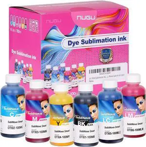 NUGU 6 X 100ml Sublimation Ink, High Density Professional Dye Sublimation Ink, Made by in Korea, for Inkjet Printers, Heat Transfer on Mugs, t-Shirts, Phone Case etc. (6 Color) Refill Bottles Set