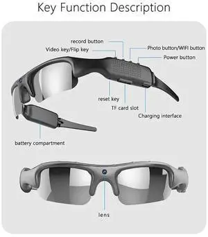 Camera Sunglasses Glasses Wide Angle 170° Camera For Cycling/Driving/Outdoor