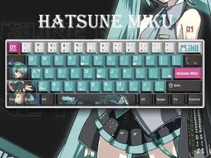 Corn 61-key Wired Small Portable Mechanical Keyboard Anti-Ghosting Hot Swap PBT Five-sided Dye Sublimation Animation Joint Custom Keycap Red Switch Hatsune MiKu