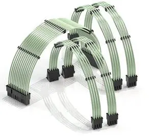 LINKUP - 30cm PSU Cable Extension 18AWG Oxygen Free Copper (OFC) Teflon Jacket Custom Mod GPU PC w/Comb Kit | 1 x 24 P (20+4) | 2 x 8 P (4+4) CPU | 2 x 8 P (6+2) GPU Set | 300mm - Green