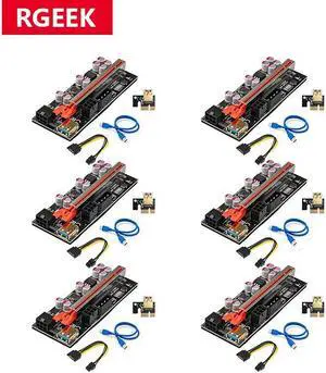 6pcs Riser 010 USB 3.0 PCIE Riser PCI Express X16 Extender Adapter 010S Plus GPU Riser Card SATA 15pin to 6pin Power Marquee LED