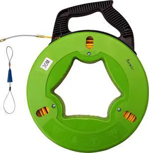 30m(100FT) Fiberglass Electrical Wire Cable Fish Tape Reel Cable Puller (Green Shell)